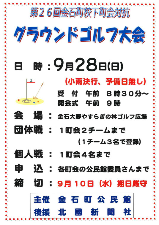 👉第26回 町対抗グラウンドゴルフ大会 参加チーム募集 Nww!2025年8月22日